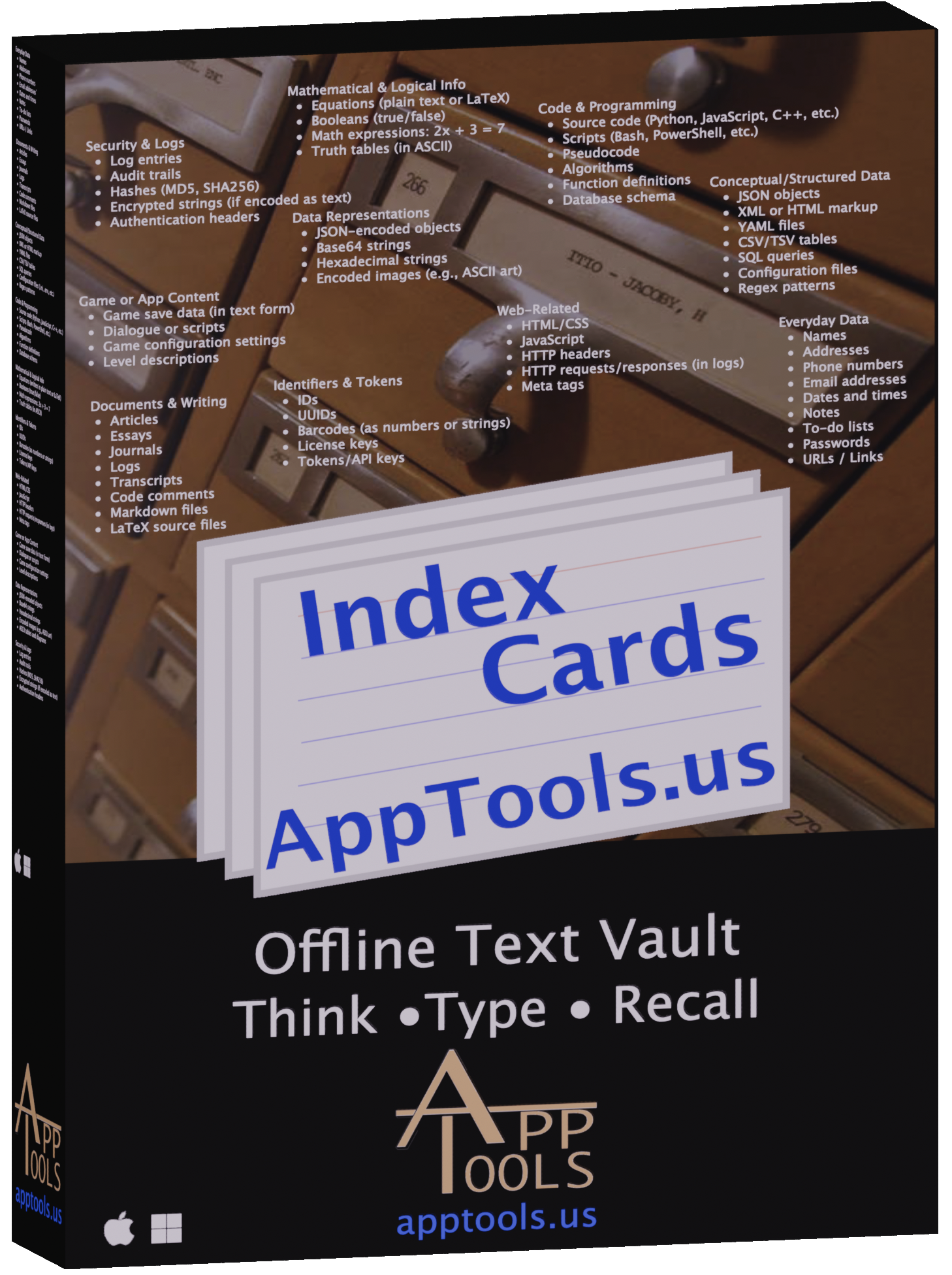 Secure searchable stack of plain text cards.
